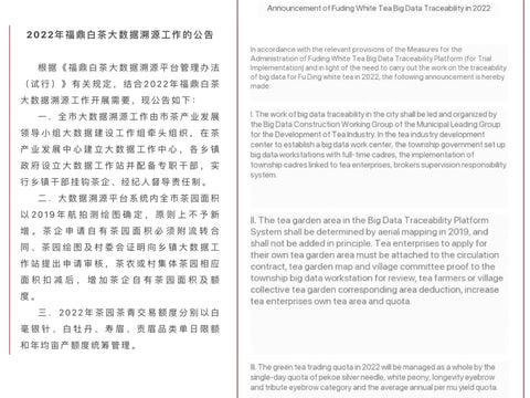 The final note in the 2022 Fuding Circular on White Tea Production is a request that all farmers and producers write recites and use traceable buying and selling methods for their transactions. This circular was posted February 18th in 2022, so is in anticipation for the 2022 harvest year of Fuding White Tea.
