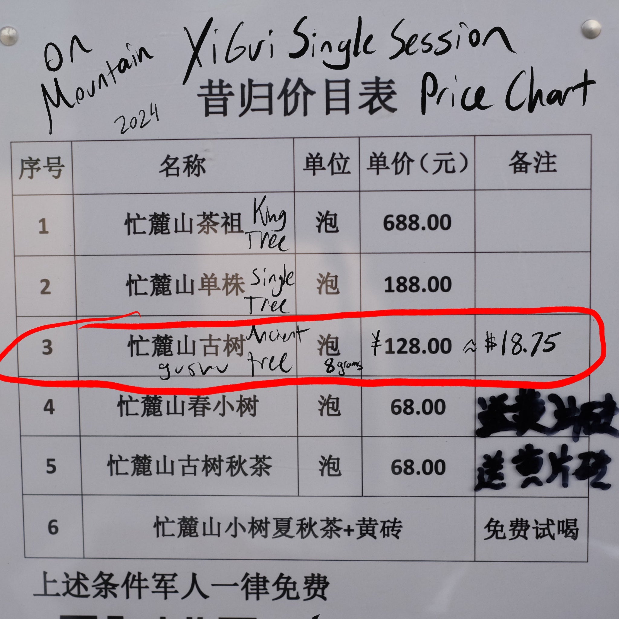 - $0.52/g Yiwu Guafengzhai (Gushu) 6 grams = $3.12